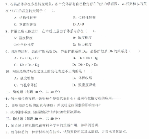 西南科技大学考博辅导班:2019年西南科技大学考博材料科学导论初试真题