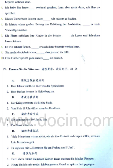 2020-2021年武汉理工考研辅导班:2009年武汉理工大学242德语考研真题
