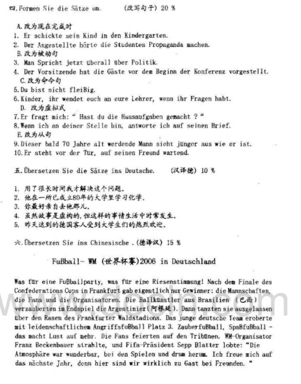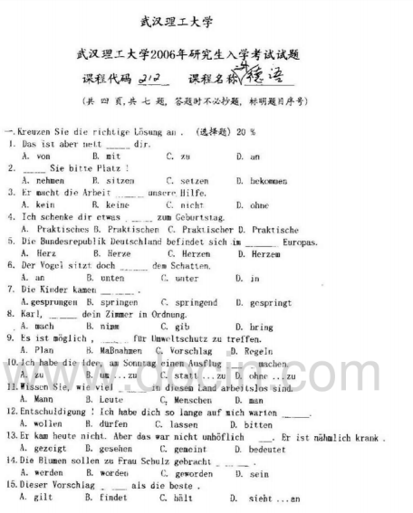2020-2021年武汉理工考研辅导班:2006年武汉理工大学242德语考研真题