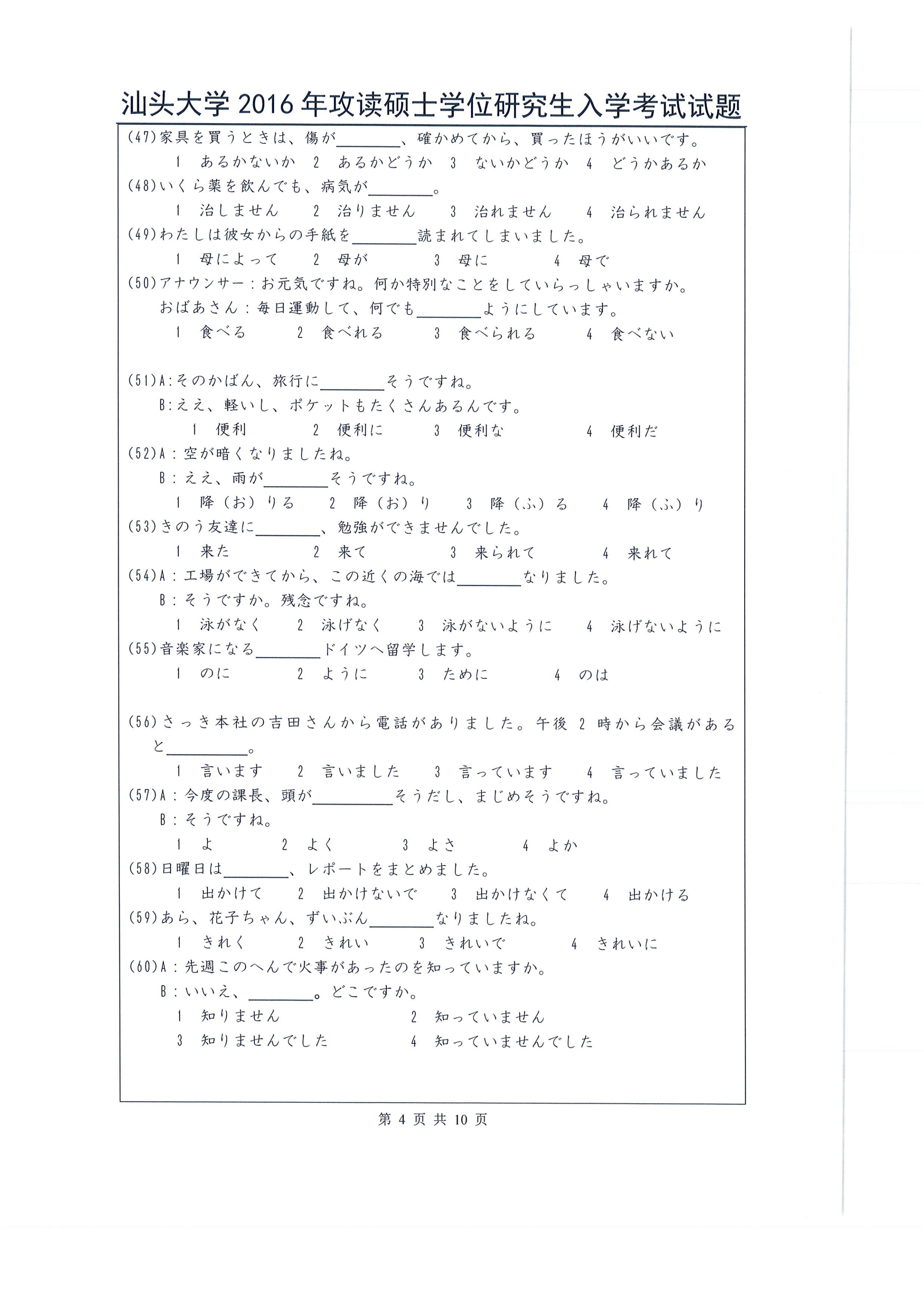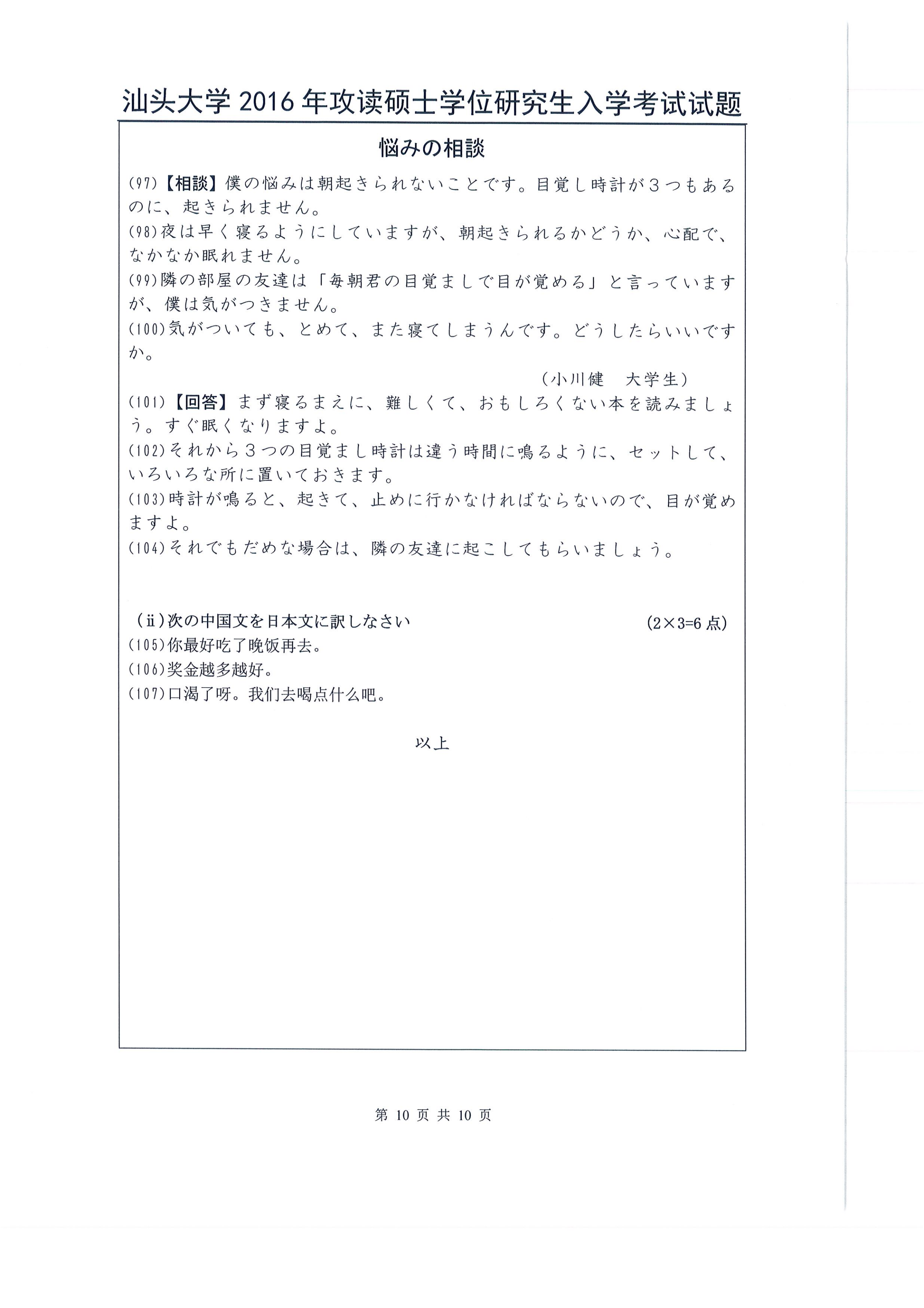 汕头大学考研辅导班:2016年汕头大学263日语考研真题