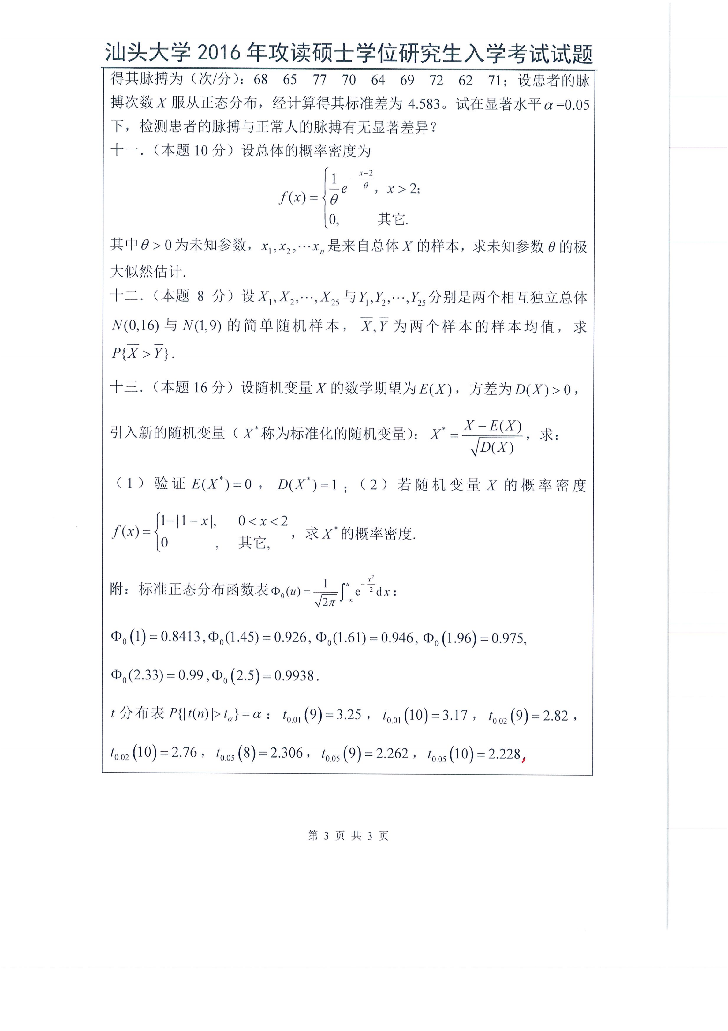 汕头大学考研辅导班:2016年汕头大学601数学(理)考研真题