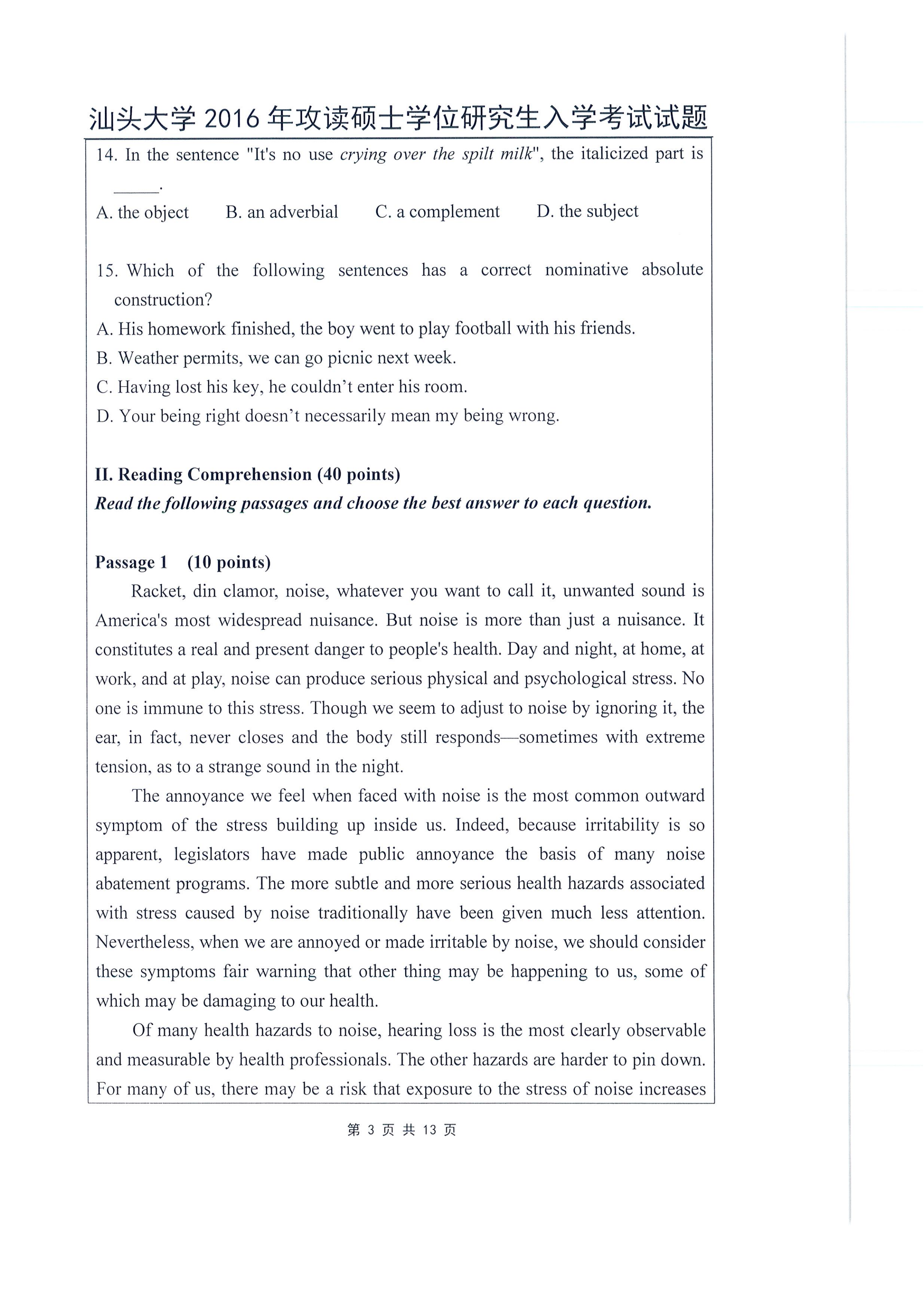 汕头大学考研辅导班:2016年汕头大学624基础英语考研真题