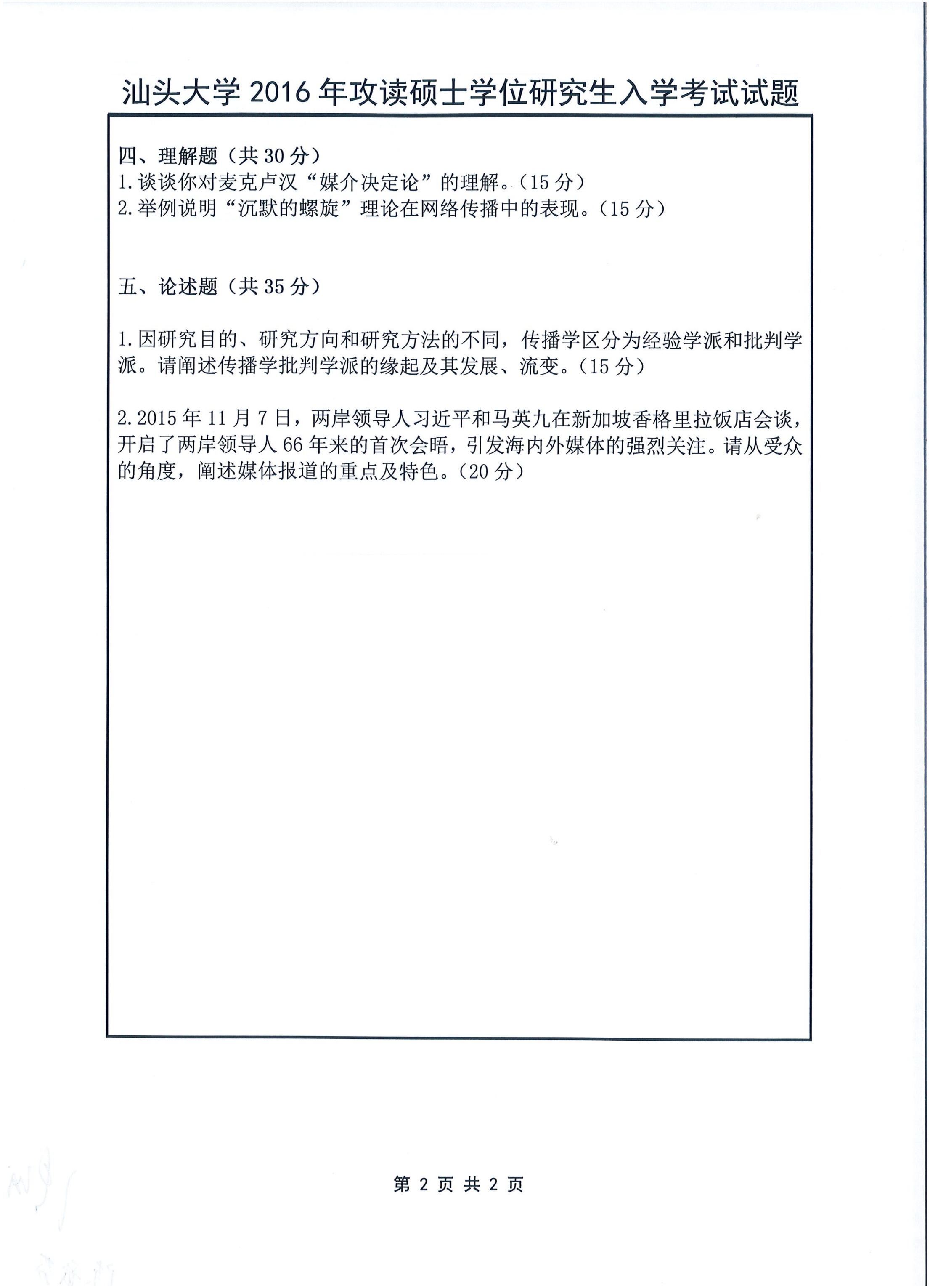汕头大学考研辅导班:2016年汕头大学625中外新闻史与新闻传播理论考研真题