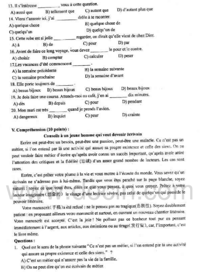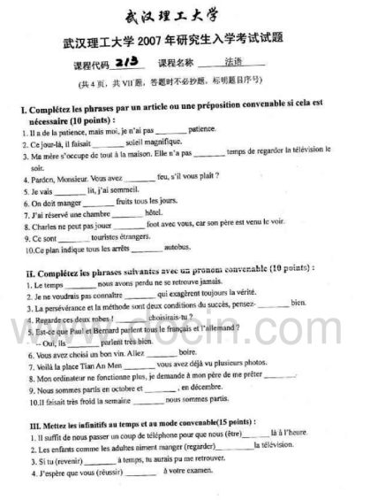 2020-2021年武汉理工考研辅导班:武汉理工大学243法语2007年考研真题