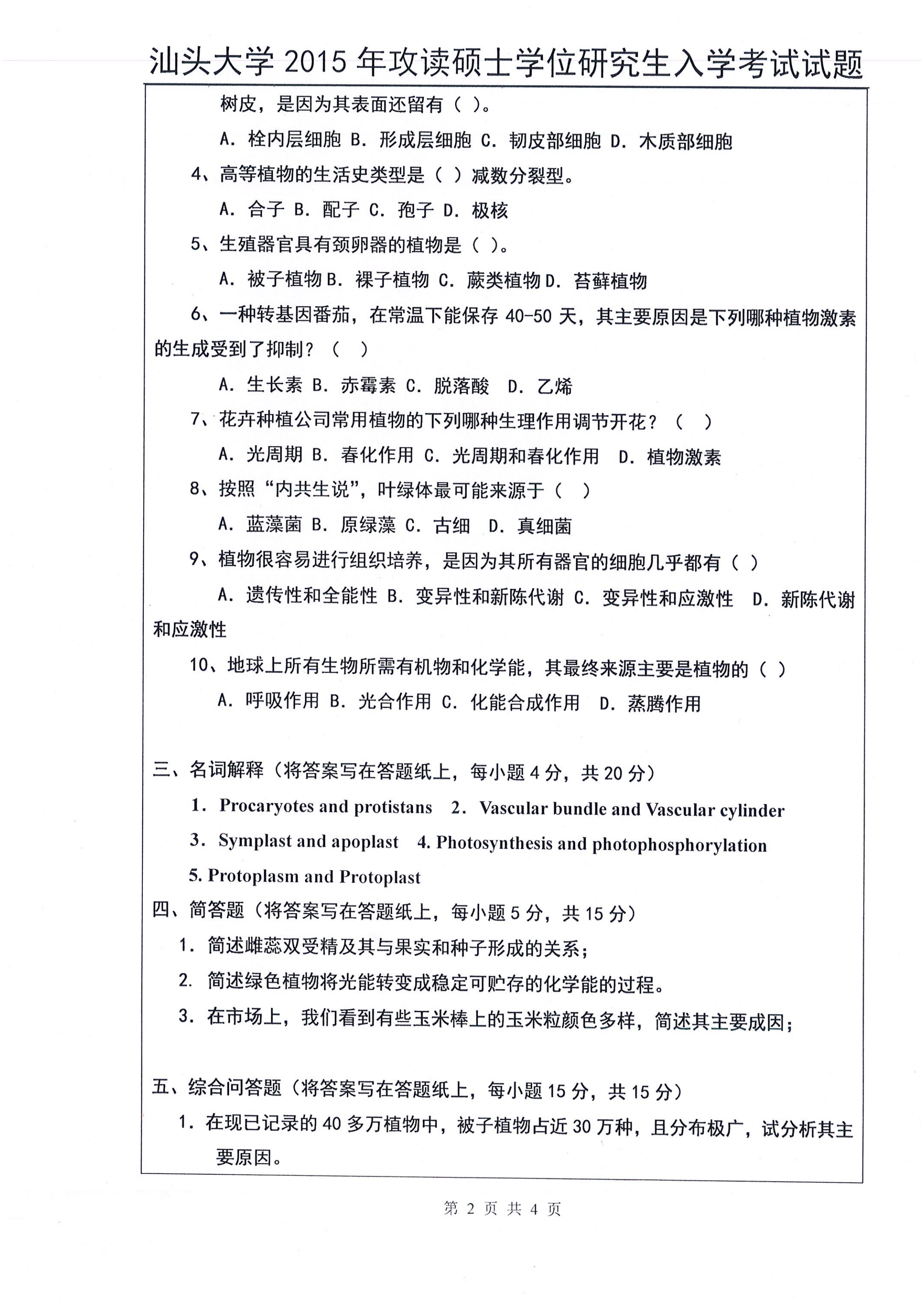 汕头大学考研辅导班:2015年汕头大学考研817普通生物学真题