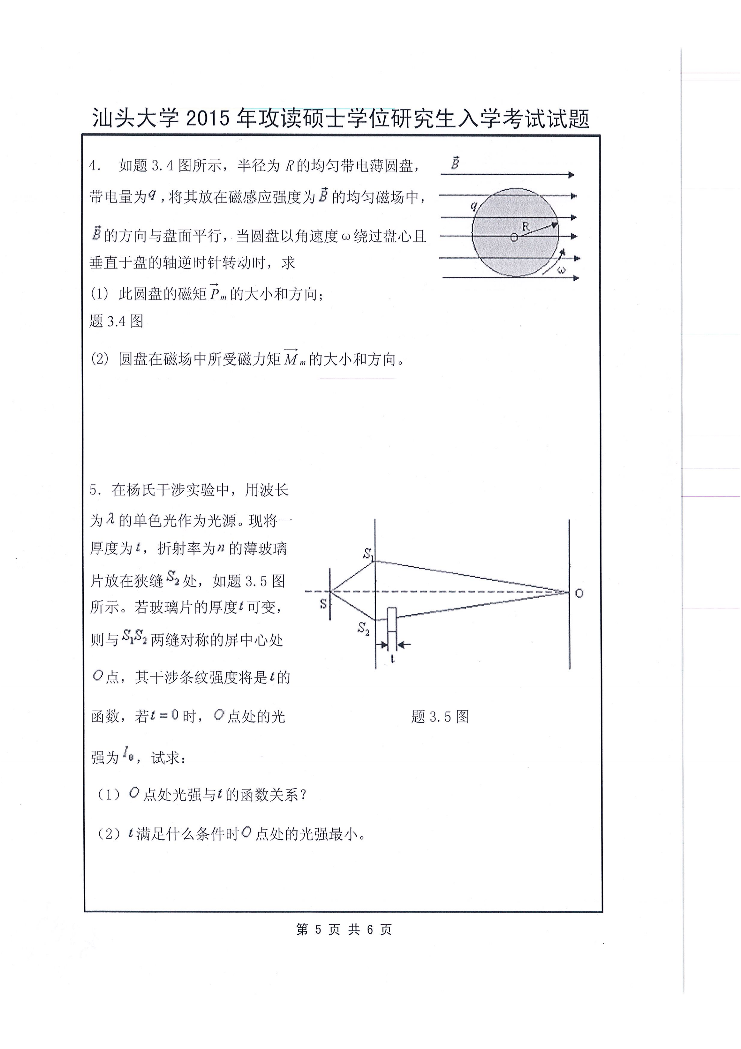 汕头大学考研辅导班:2015年汕头大学考研819普通物理学真题