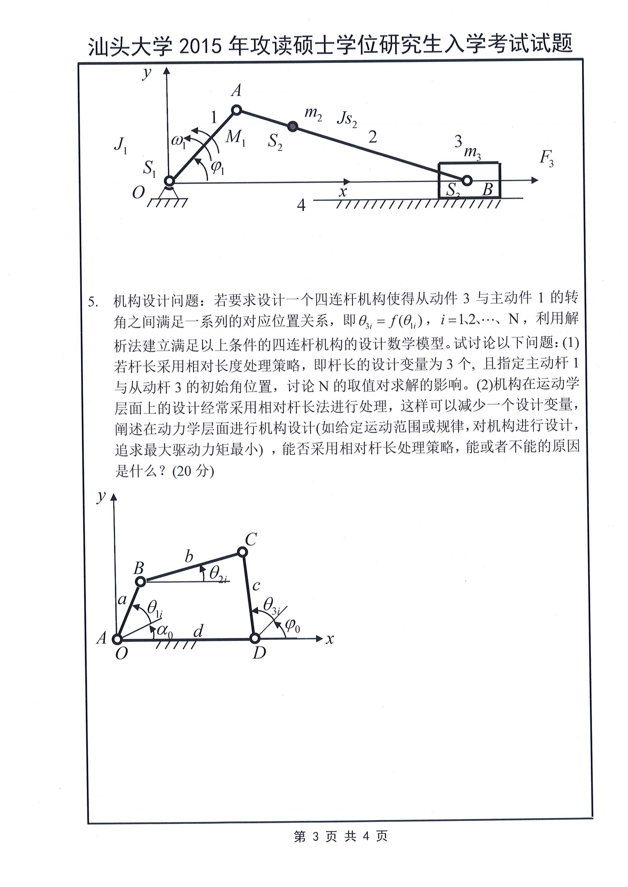 汕头大学考研辅导班:2015年汕头大学考研826机械原理真题