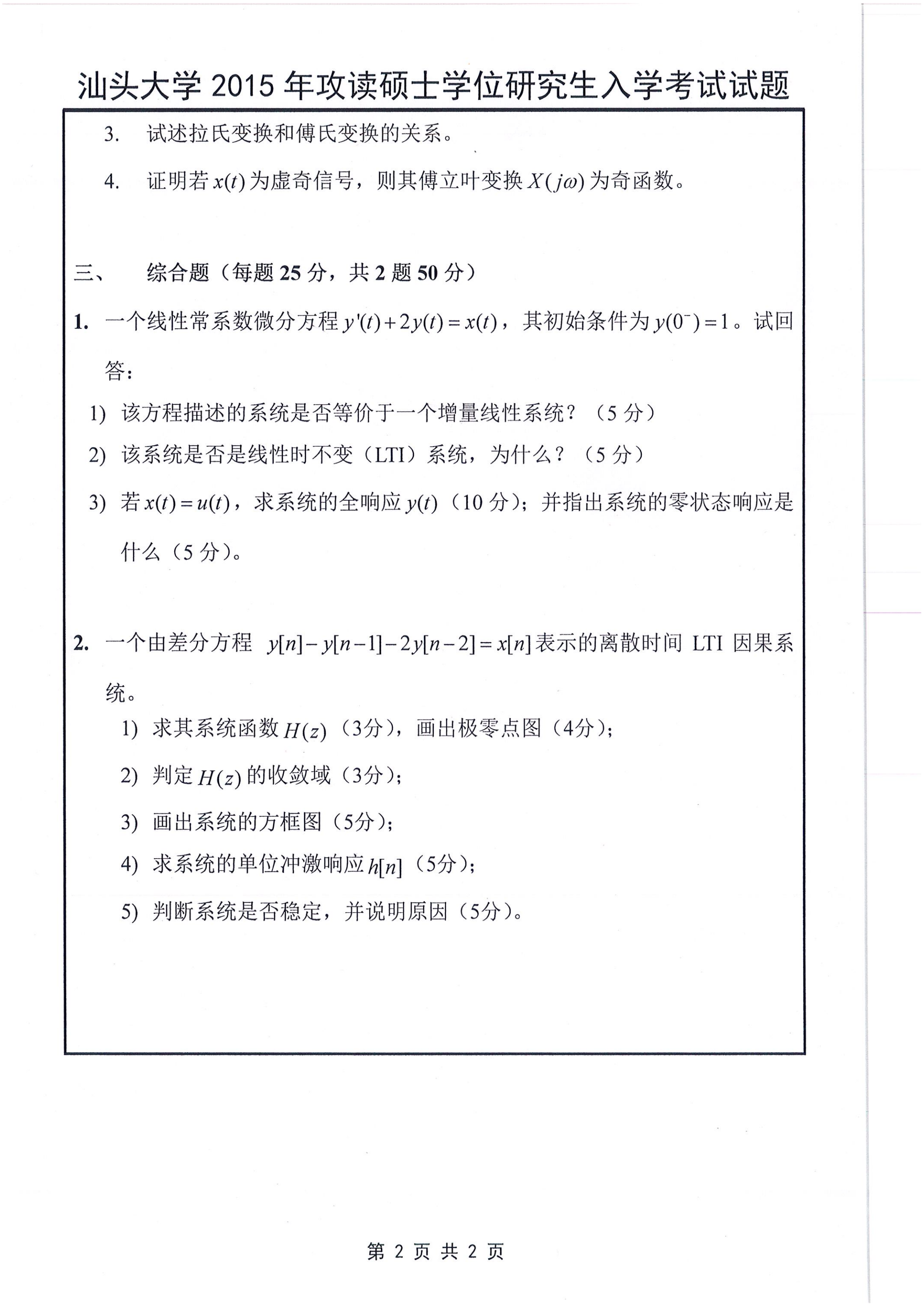 汕头大学考研辅导班:2015年汕头大学考研829信号与系统真题