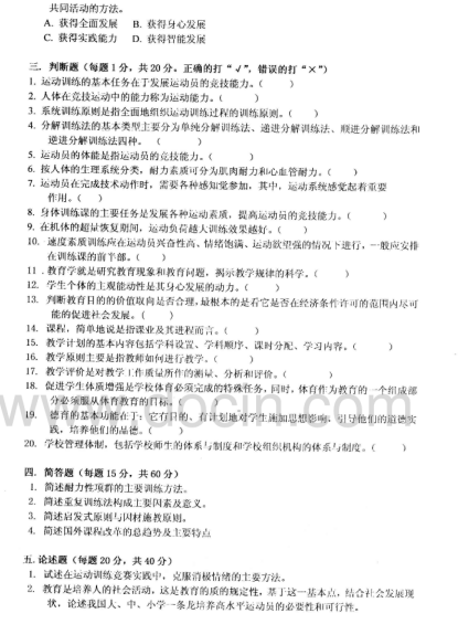 2020-2021年武汉理工考研辅导班:武汉理工大学617体育教育专业综合2007年考研真题