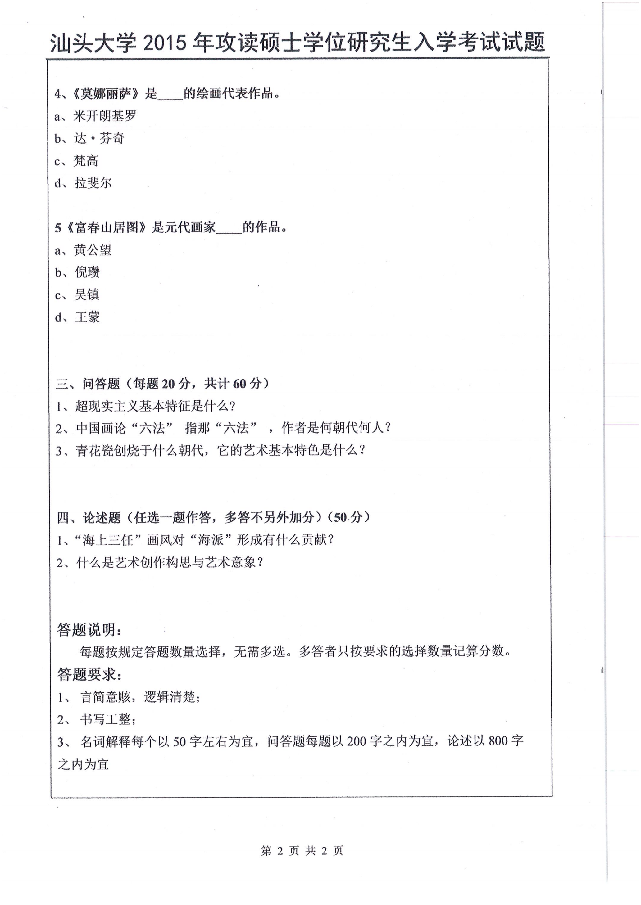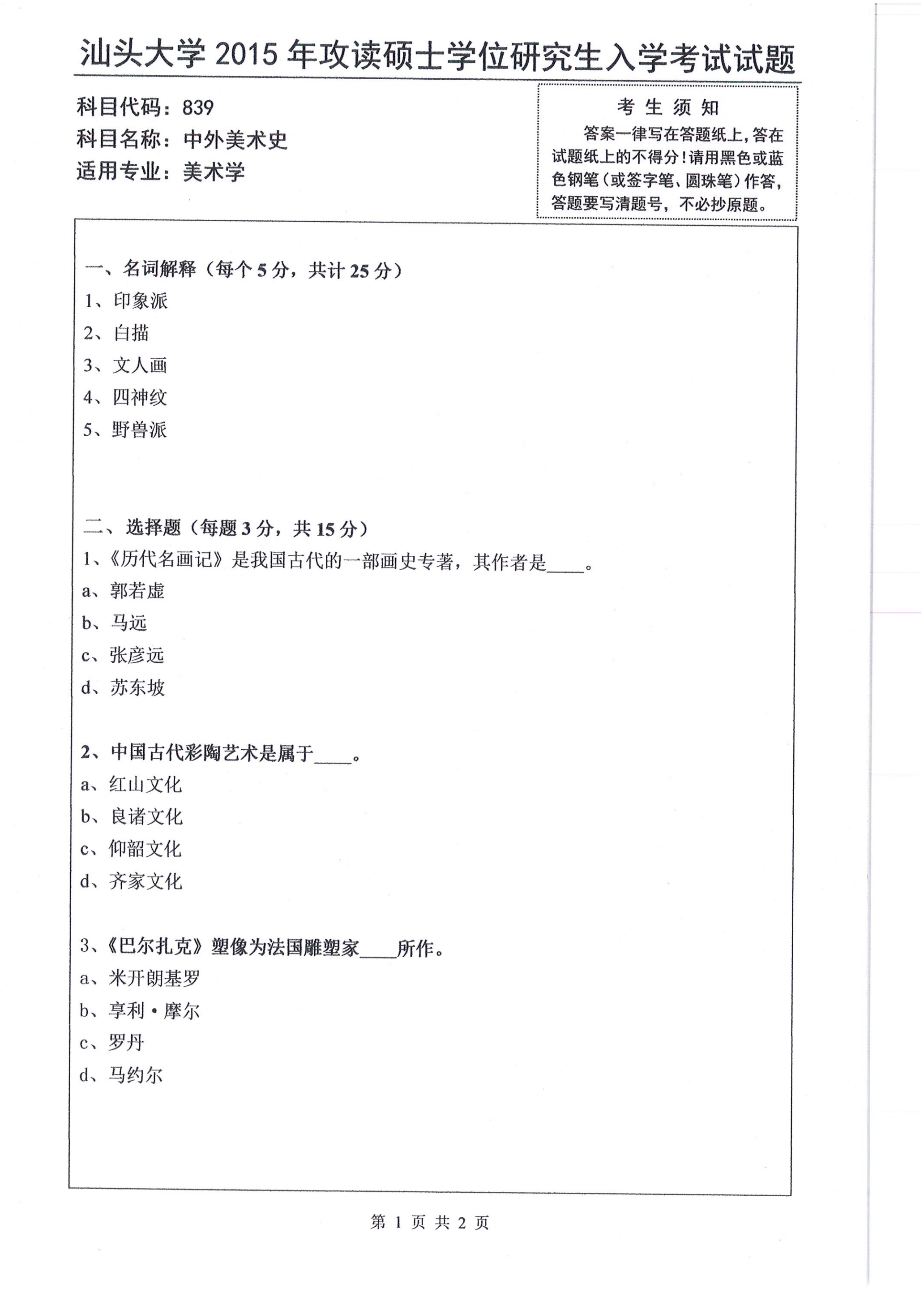 汕头大学考研辅导班:2015年汕头大学考研839中外美术史真题