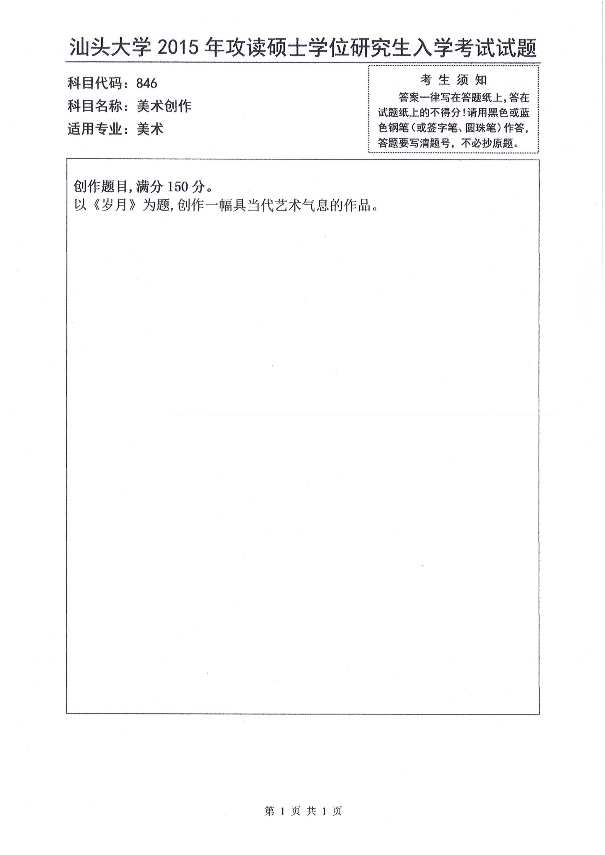 汕头大学考研辅导班:2015年汕头大学考研846美术创作真题