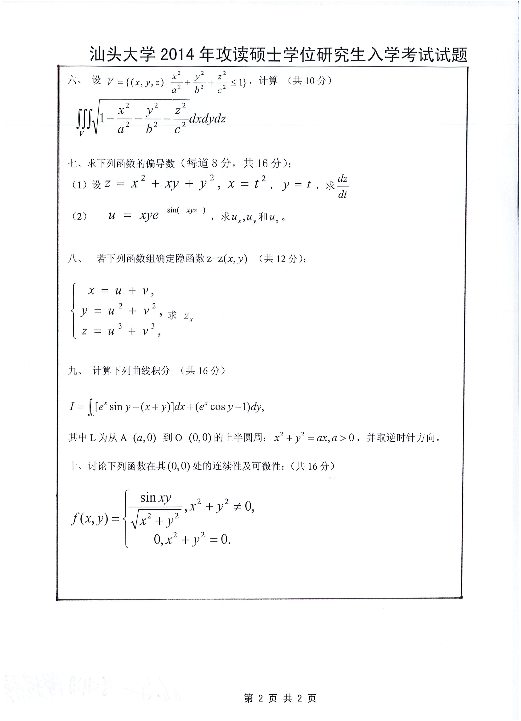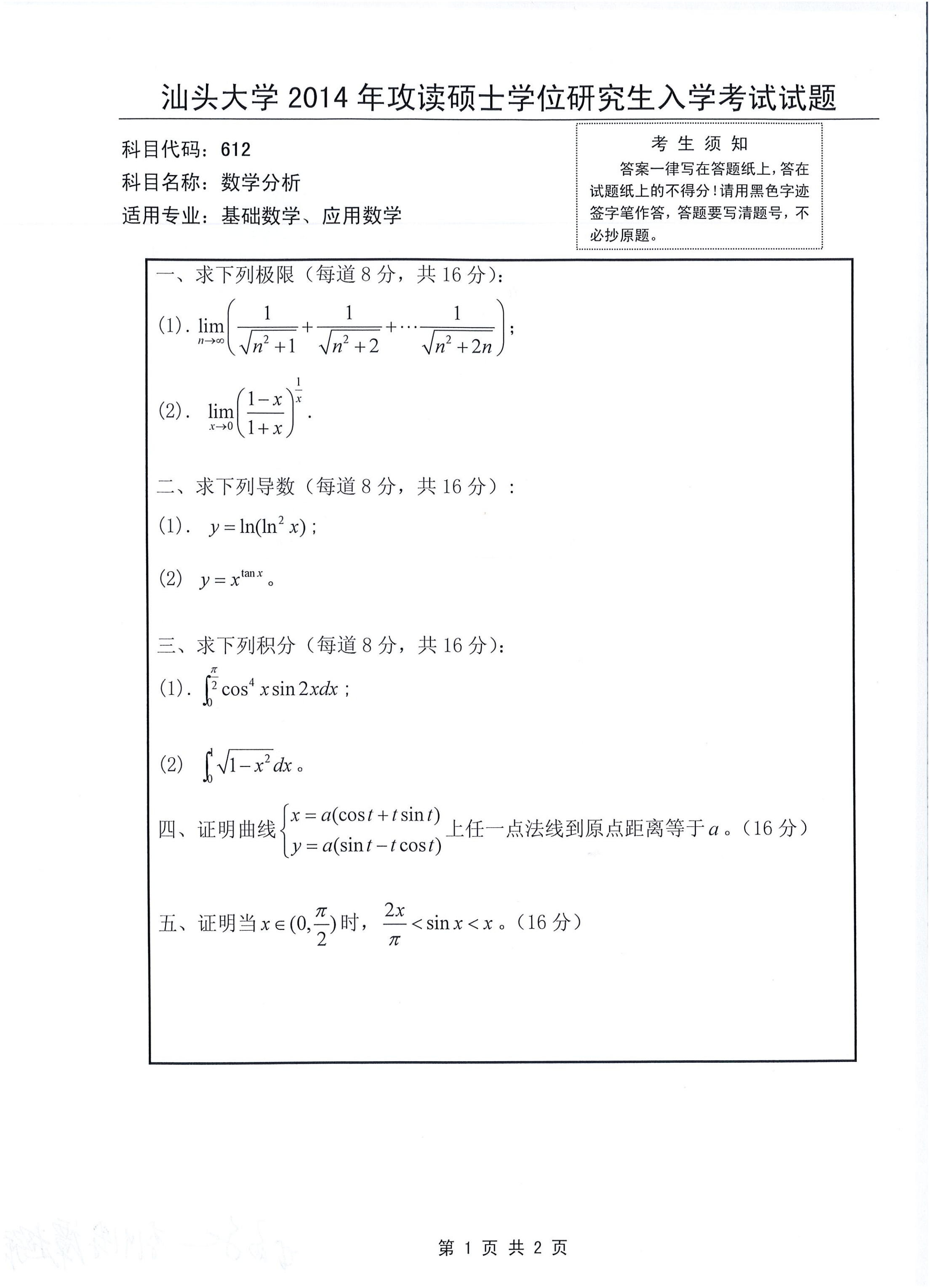 汕头大学考研辅导班:2014年汕头大学考研612数学分析真题