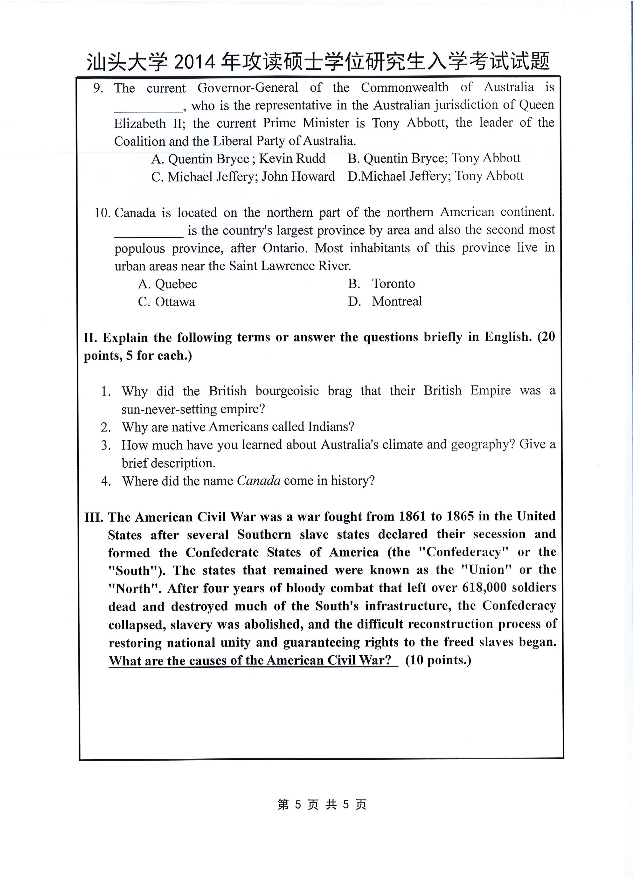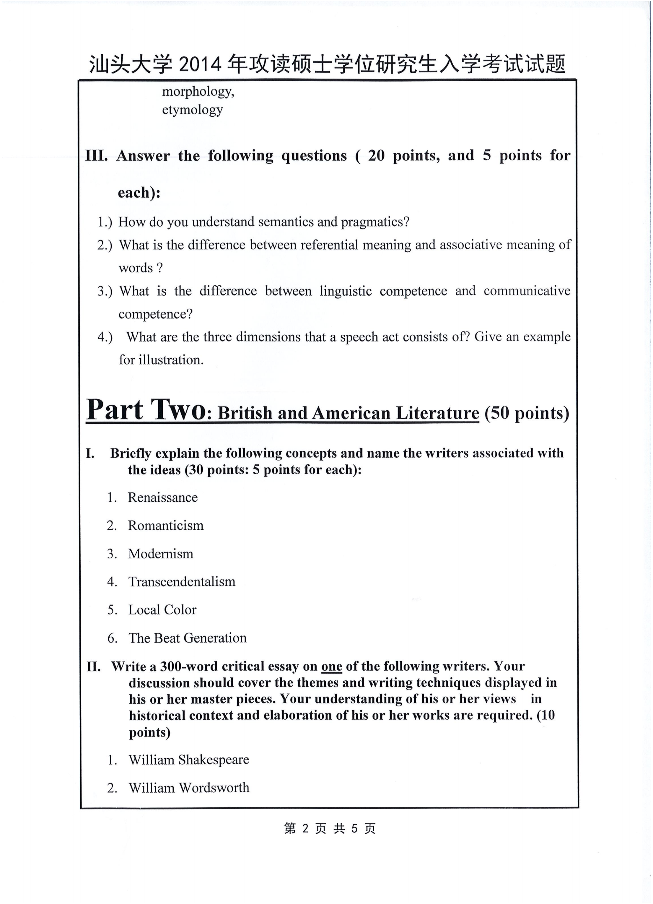 汕头大学考研辅导班:2014年汕头大学考研804基础英语真题