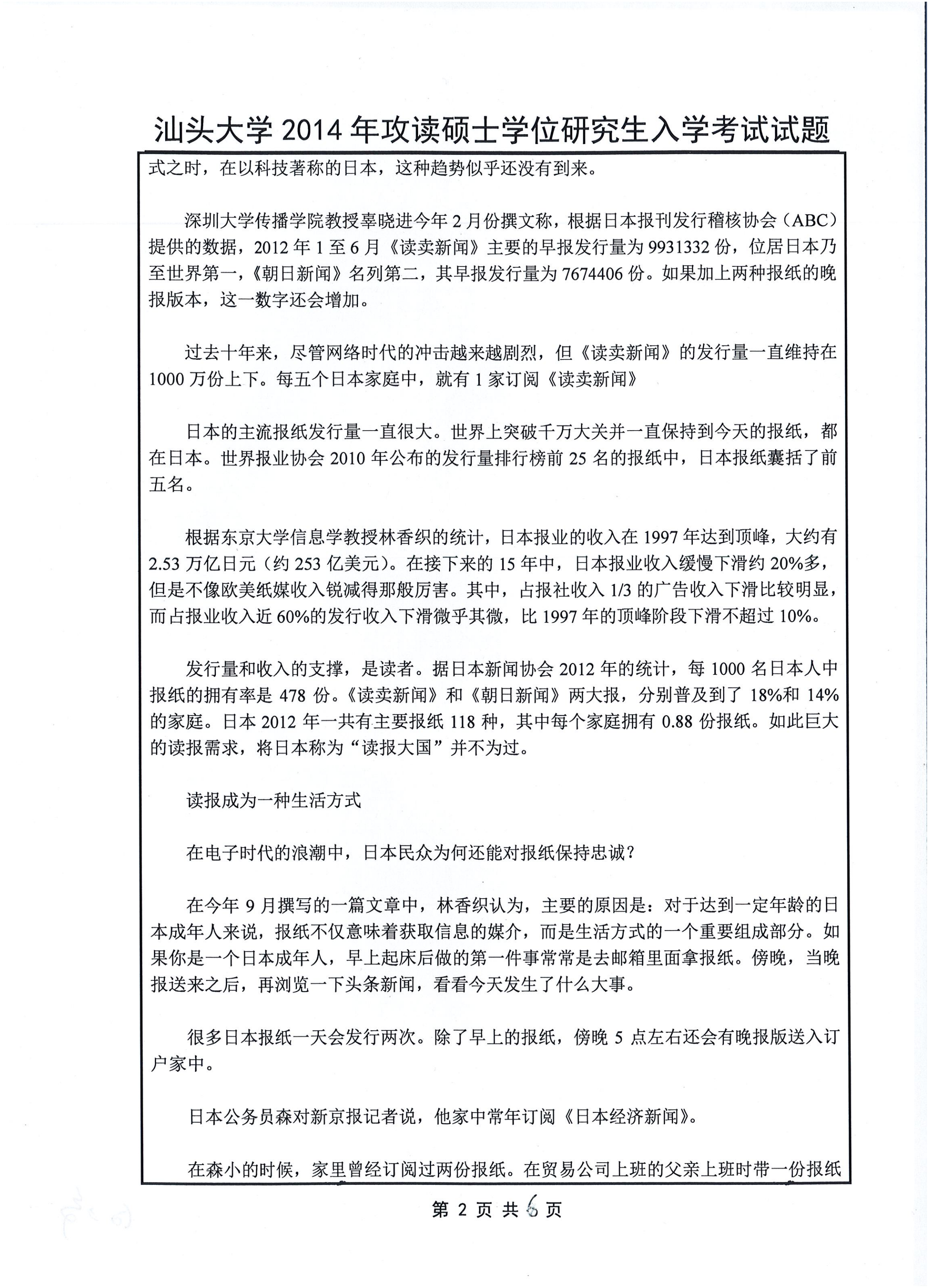 汕头大学考研辅导班:2014年汕头大学考研804基础英语真题