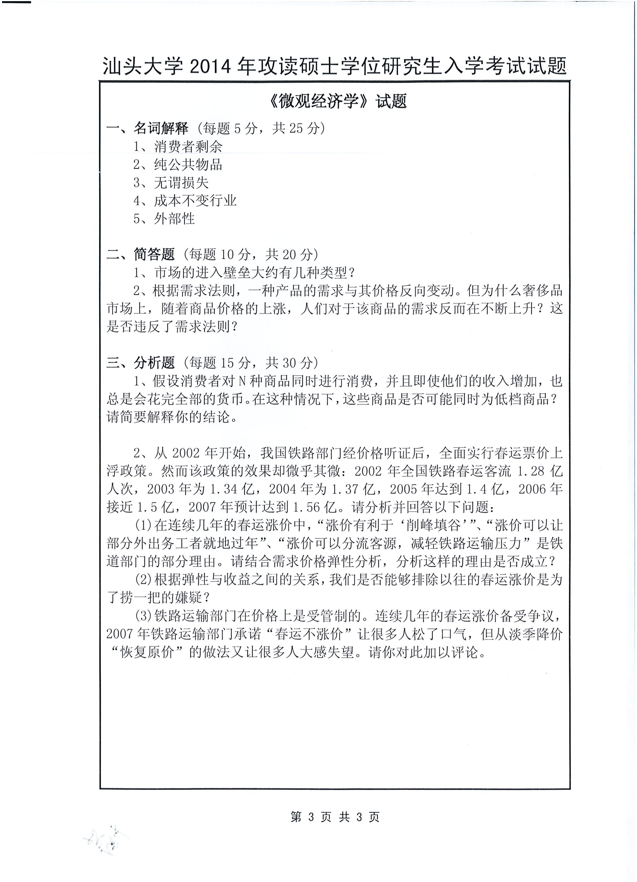 汕头大学考研辅导班:2014年汕头大学考研812微观经济学与管理学真题