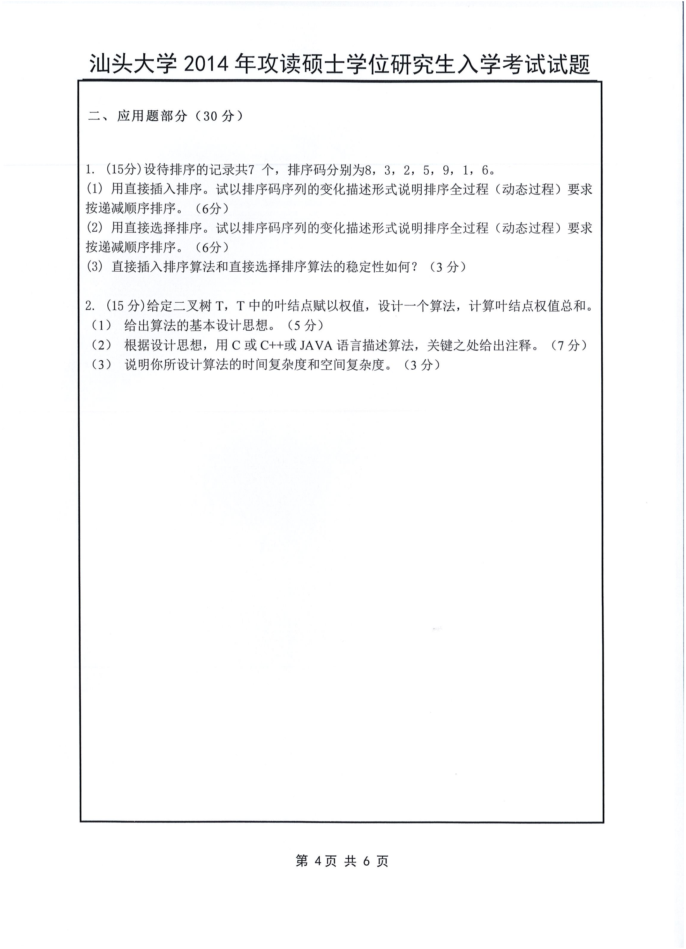 汕头大学考研辅导班:2014年汕头大学考研830计算机基础综合真题