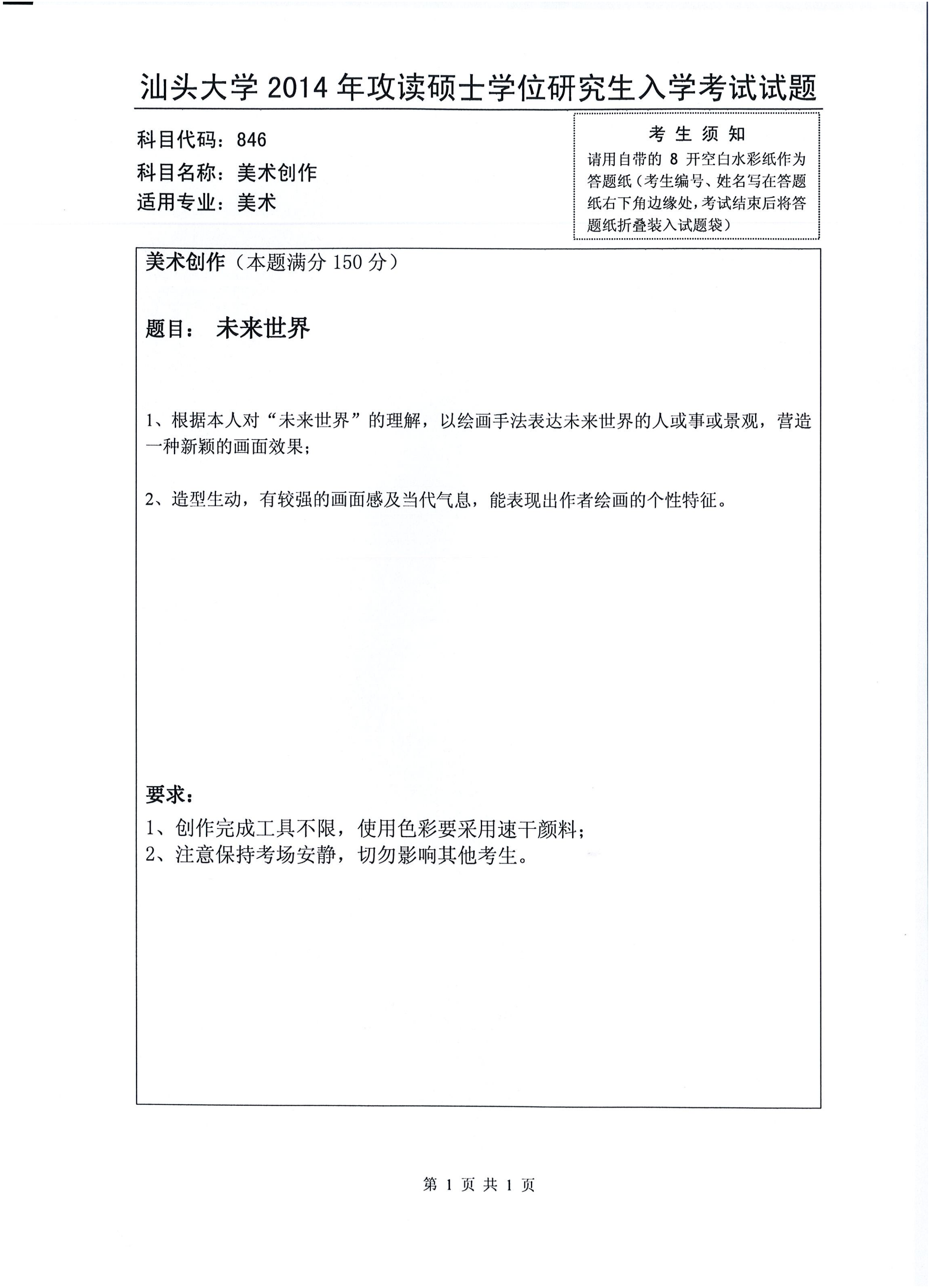 汕头大学考研辅导班:2014年汕头大学考研846美术创作真题