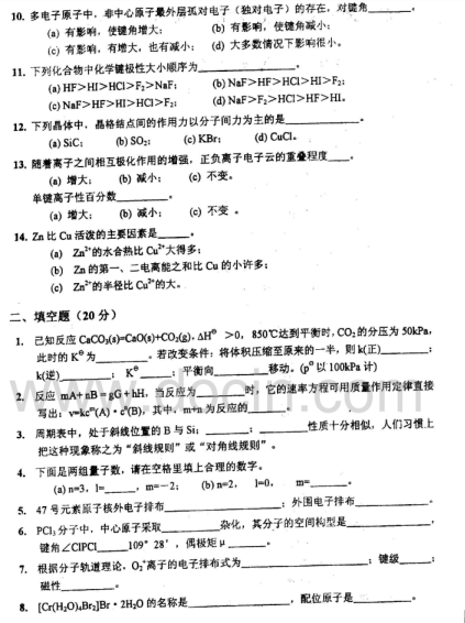 2020-2021年武汉理工考研辅导:武汉理工大学623无机化学2003年考研真题