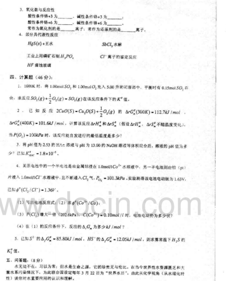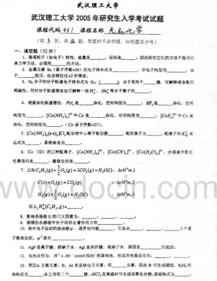 2020-2021年武汉理工考研辅导:武汉理工大学623无机化学2005年考研真题