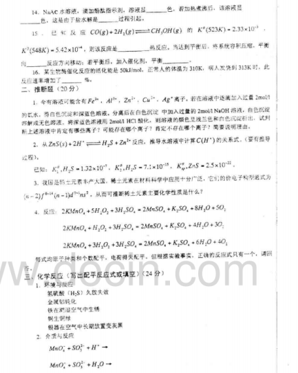 2020-2021年武汉理工考研辅导:武汉理工大学623无机化学2004年考研真题