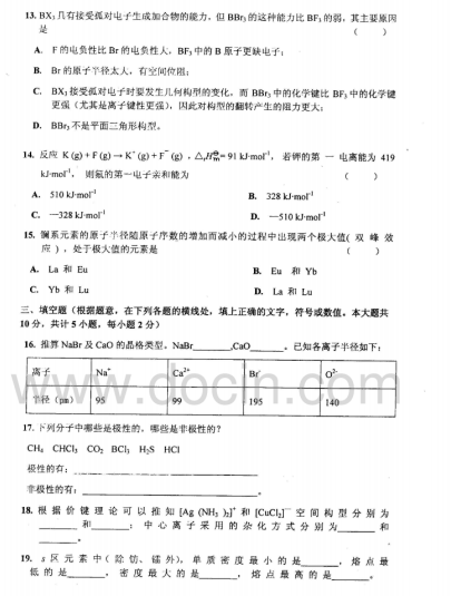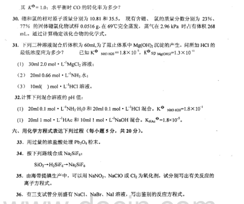 2020-2021年武汉理工考研辅导:武汉理工大学623无机化学2006年考研真题