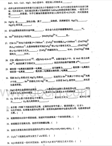2020-2021年武汉理工考研辅导:武汉理工大学623无机化学2008年考研真题