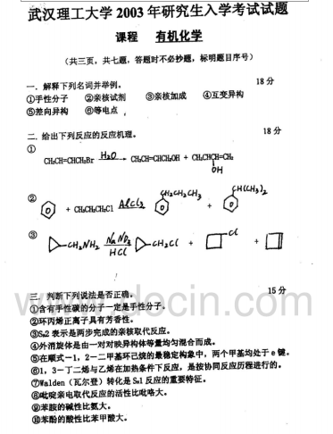 2020-2021年武汉理工考研辅导:武汉理工大学624有机化学2003考研真题