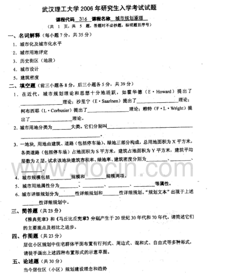 2020-2021年武汉理工考研辅导:武汉理工大学628城市规划原理2006考研真题