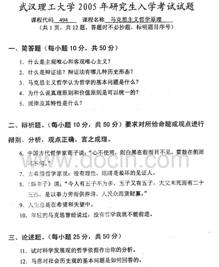 2020-2021年武汉理工考研辅导:武汉理工大学629马克思主义哲学原理2005考研真题