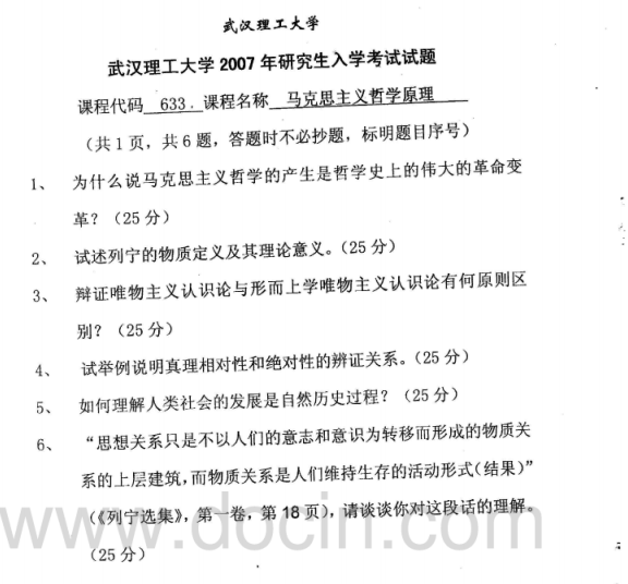 2020-2021年武汉理工考研辅导:武汉理工大学629马克思主义哲学原理2007考研真题