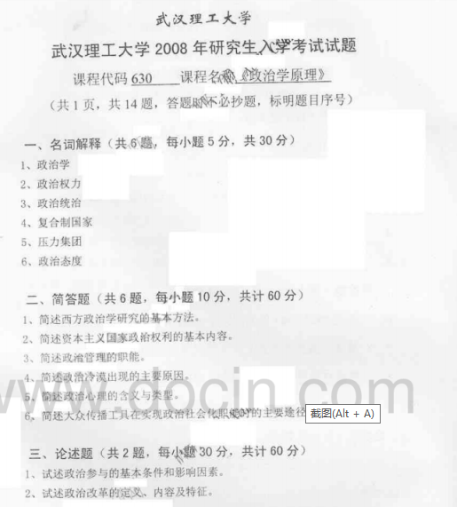 2020-2021年武汉理工考研辅导班:武汉理工大学630政治学原理2008考研真题