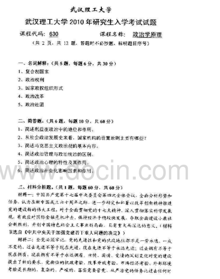 2020-2021年武汉理工考研辅导班:武汉理工大学630政治学原理2010考研真题