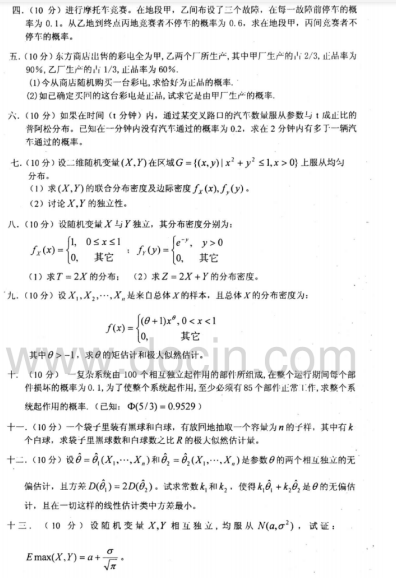 2020-2021年武汉理工考研辅导班:武汉理工大学802概率论与数理统计2009年考研真题