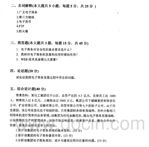 2020-2021年武汉理工考研辅导班:武汉理工大学805电子商务概论2008年考研真题