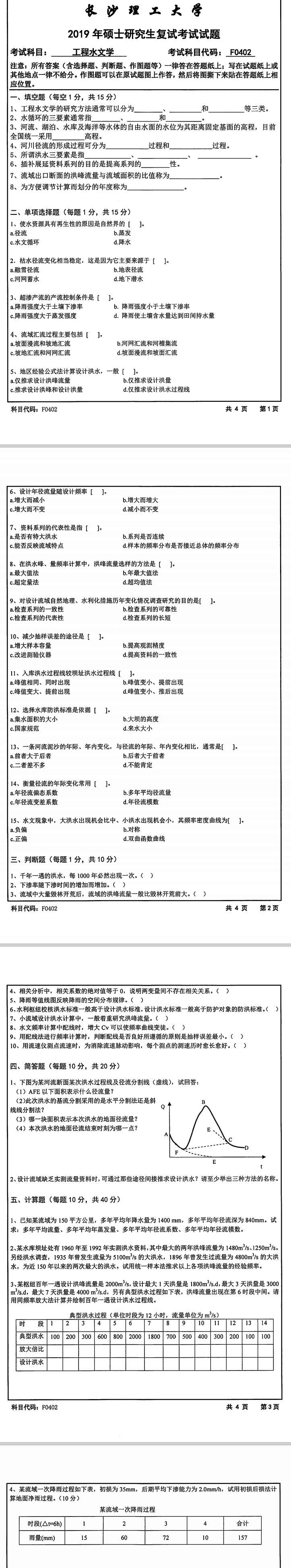 长沙理工大学考研辅导班:2019年长沙理工大学水利工程学院学院考研复试F0402工程水文学科目考试真题