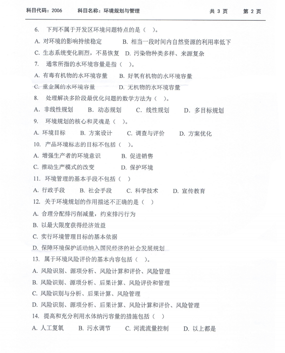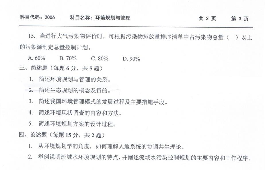 西南科技大学考博辅导班:2019年西南科技大学2006环境规划与管理考博真题分享