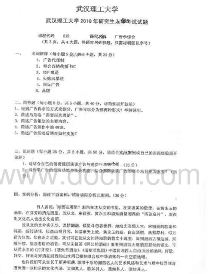 2020-2021年武汉理工考研辅导班:武汉理工大学812广告学综合2010年考研真题