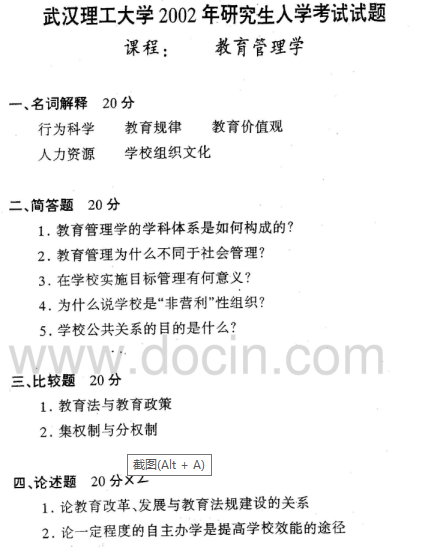 2020-2021年武汉理工考研辅导班:武汉理工大学814教育学管理2002年考研真题
