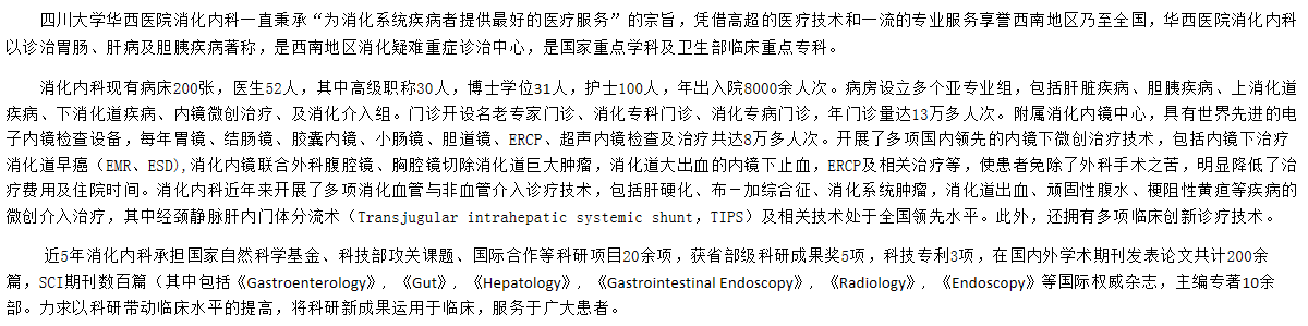 2020年四川大学华西临床医学院内科学(消化)考研学科介绍