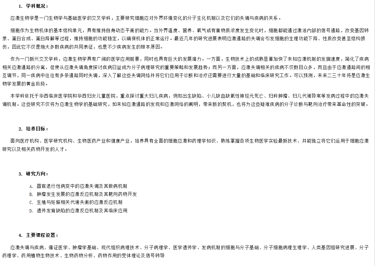2020年四川大学华西临床医学院医学应激生物学考研学科介绍