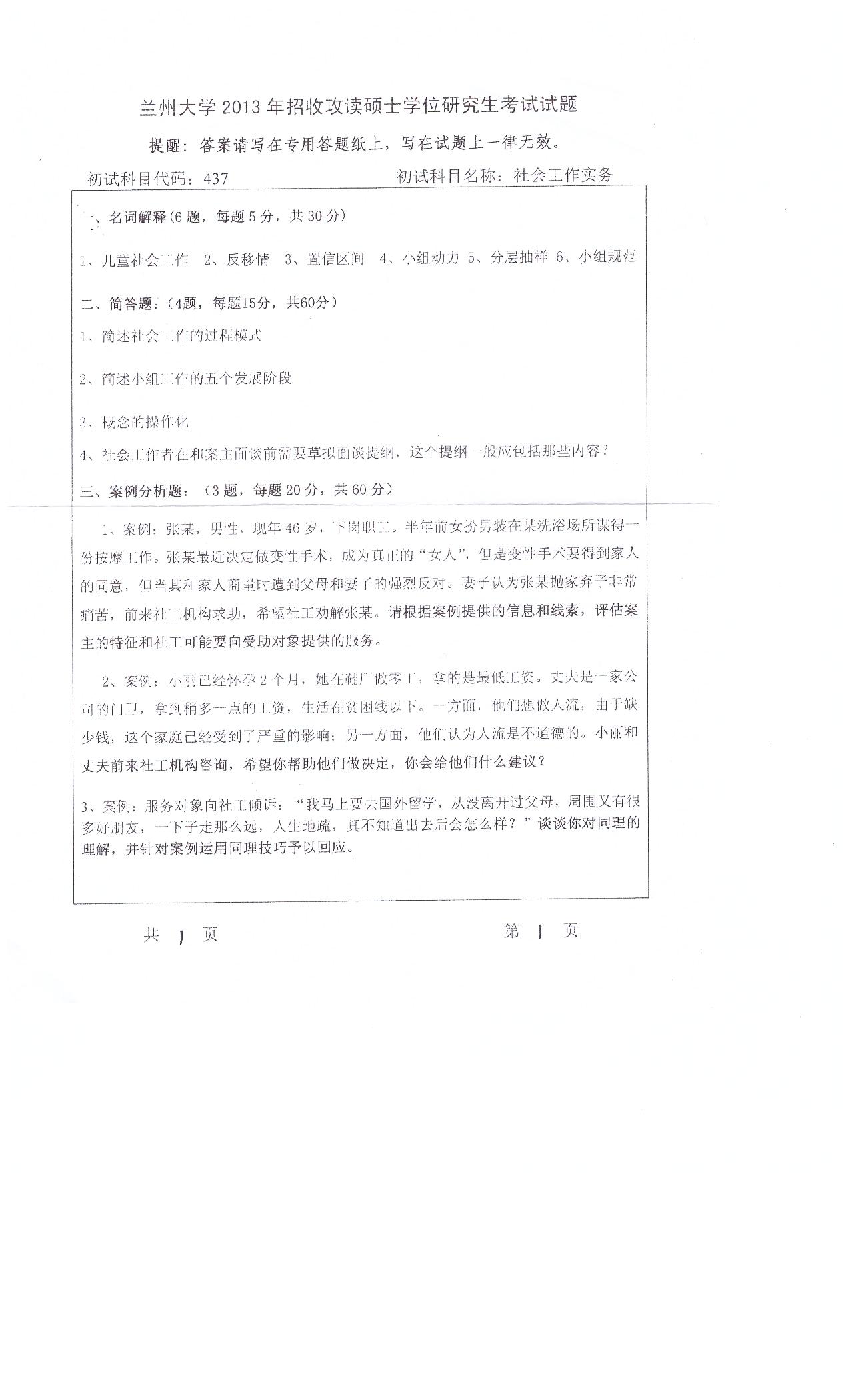 兰大考研辅导班:兰州大学2013社会工作实务考研真题