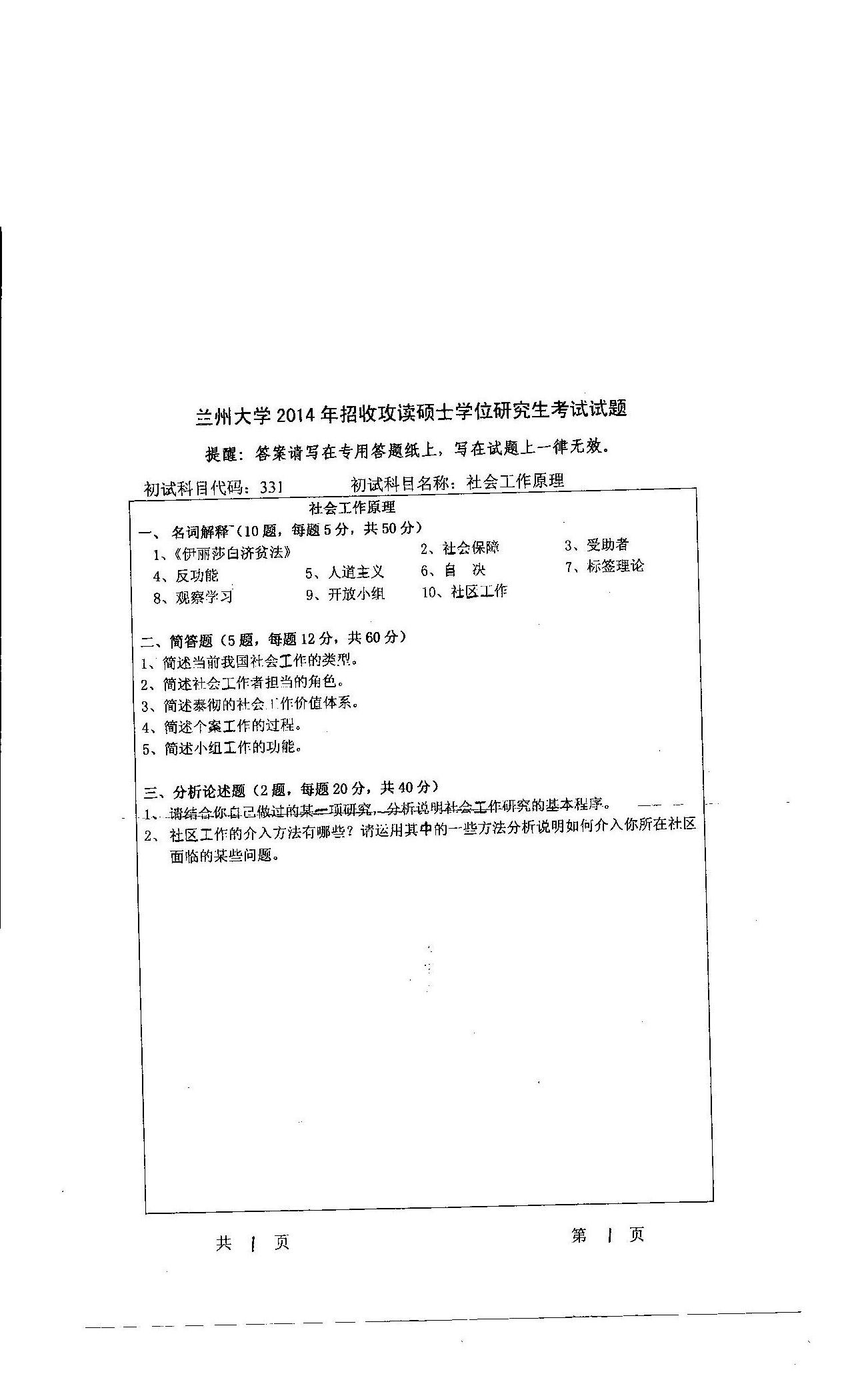 兰大考研辅导班:兰州大学2014社会工作原理考研真题