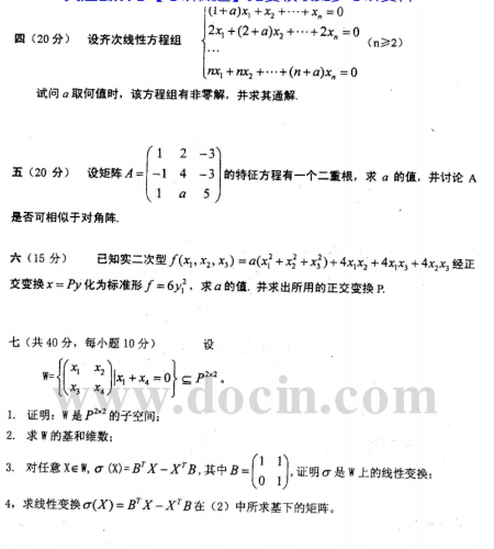 2020-2021年武汉理工考研辅导班:武汉理工大学817高等代数2004年考研真题