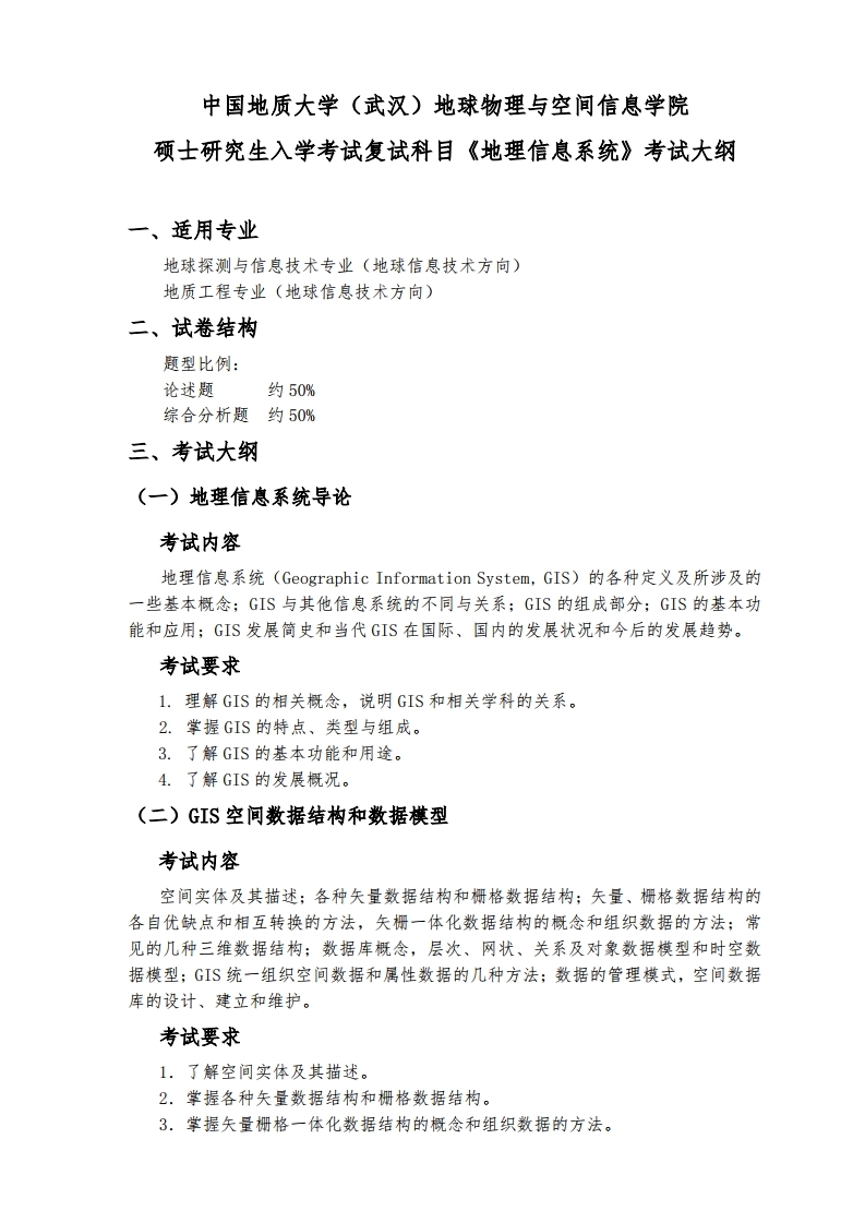 中国地质大学考研辅导班: 中国地质大学(武汉)2020年地球探测与信息技术专业&地质工程专业-地球信息技术方向-复试科目