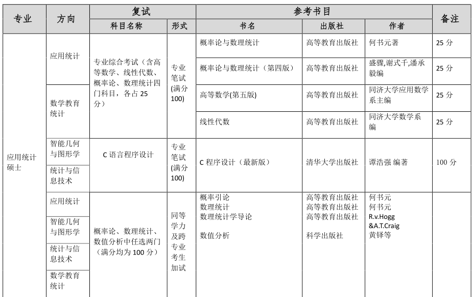 复试考试科目及参考书目: