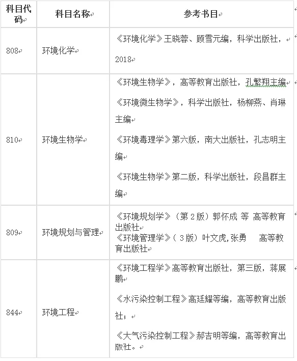 南京大学环境学院2020年硕士研究生入学考试科目及参考书目
