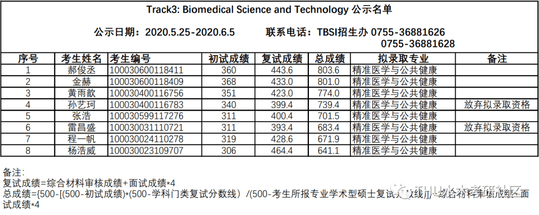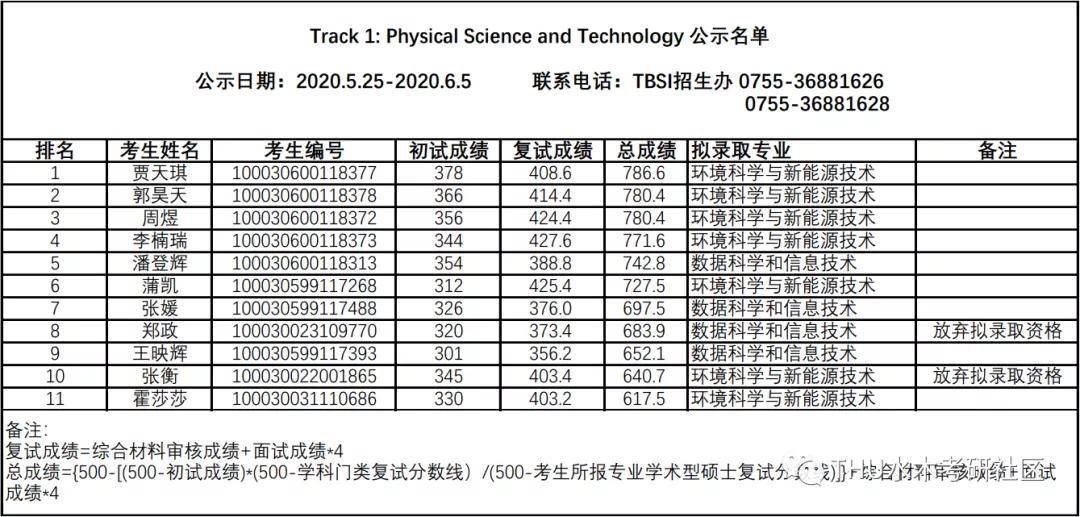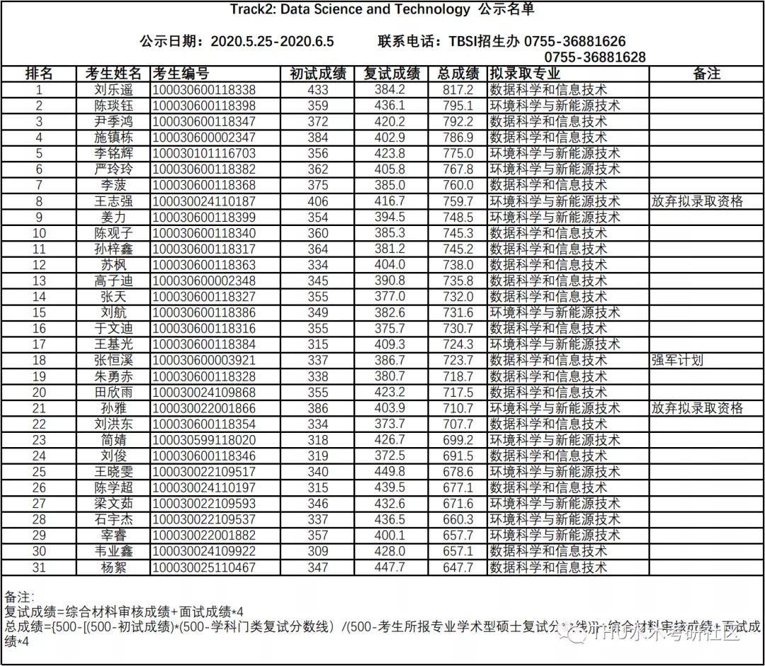 清华大学考研辅导班:2020年清华-伯克利深圳学院硕士研究生拟录取公示名单