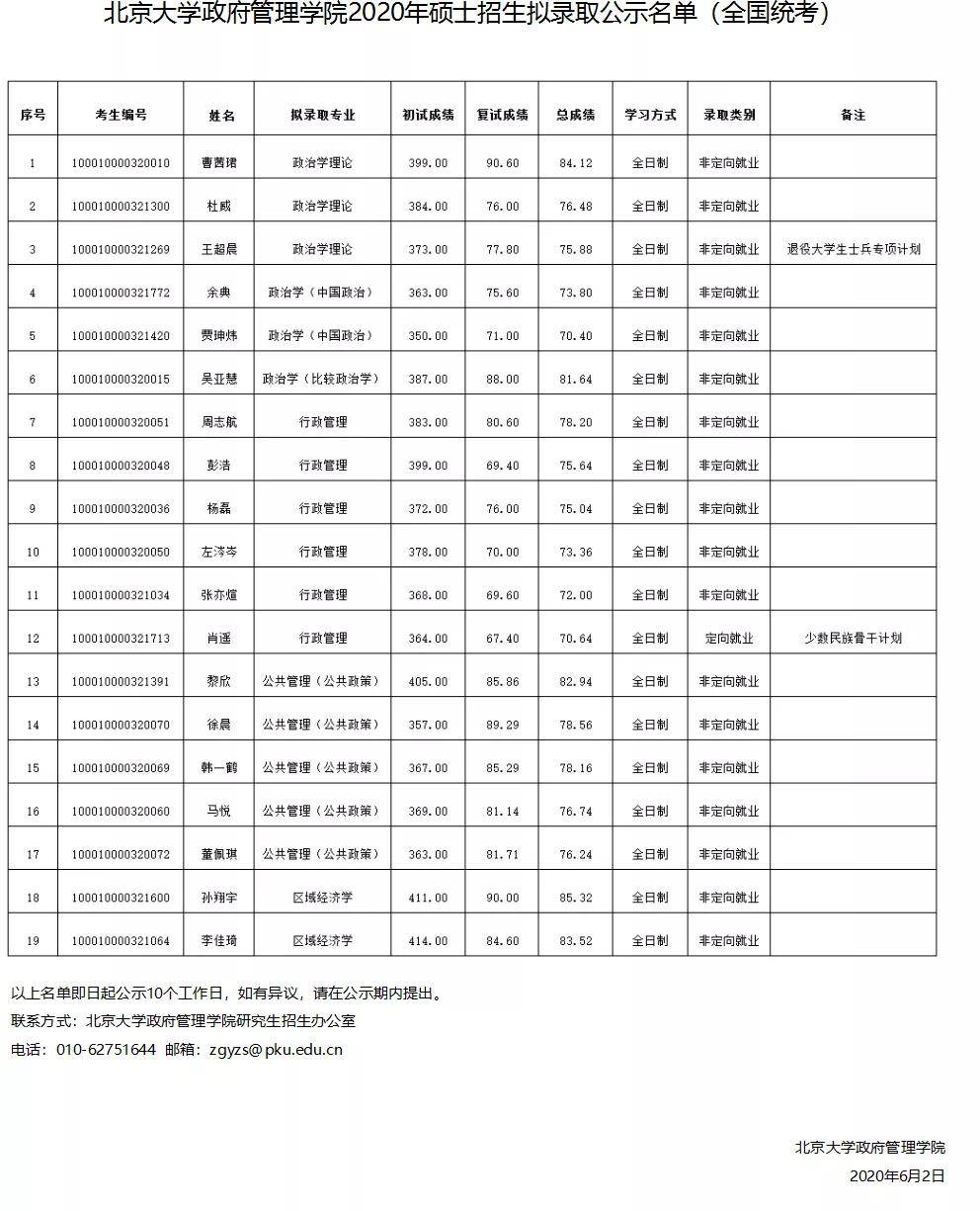 北大考研辅导班:北京大学政府管理学院2020年考研拟录取公示名单(全国统考)