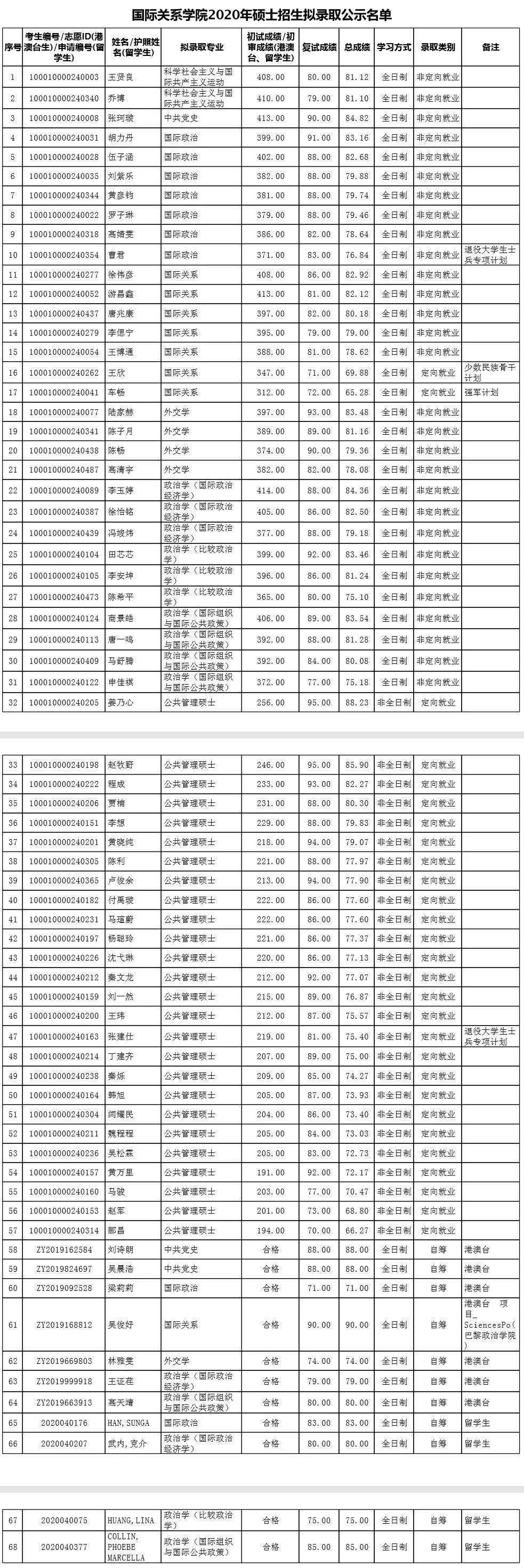 北大考研辅导班:北京大学国际关系学院2020年考研拟录取名单公布