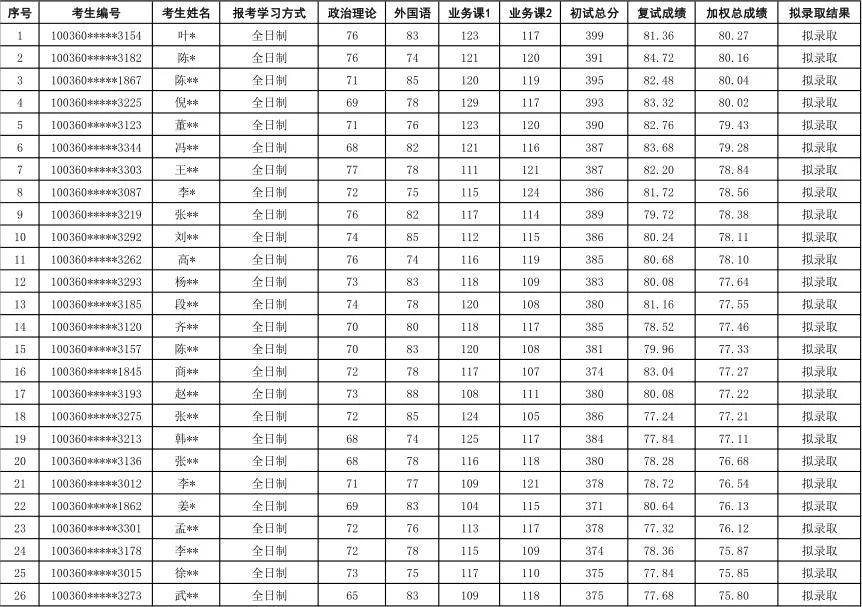 对外经济贸易大学法律硕士(非法学)2020年硕士研究生录取名单